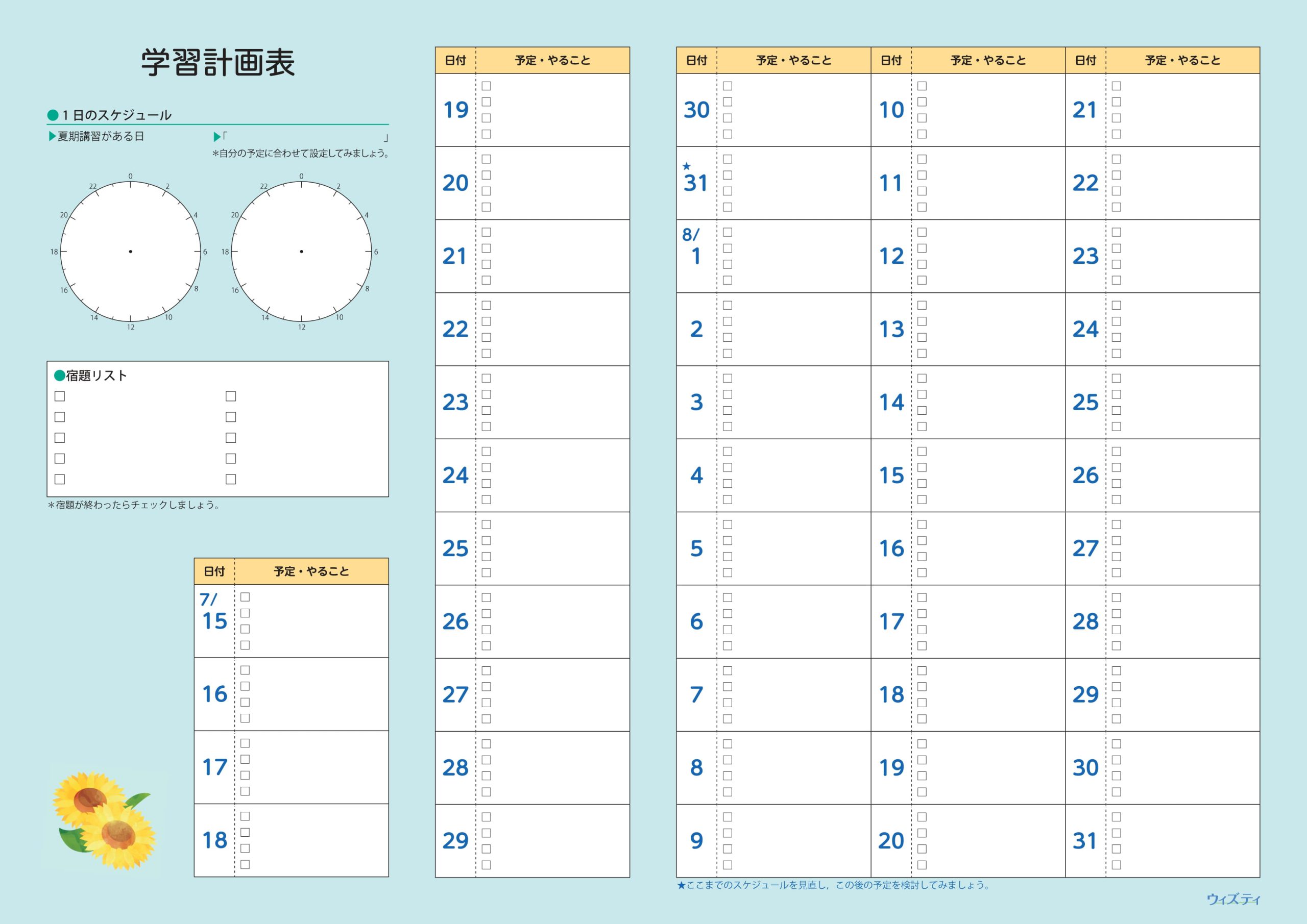 夏休み計画表中学生 2021